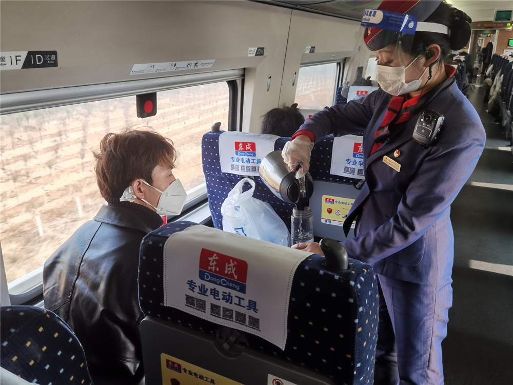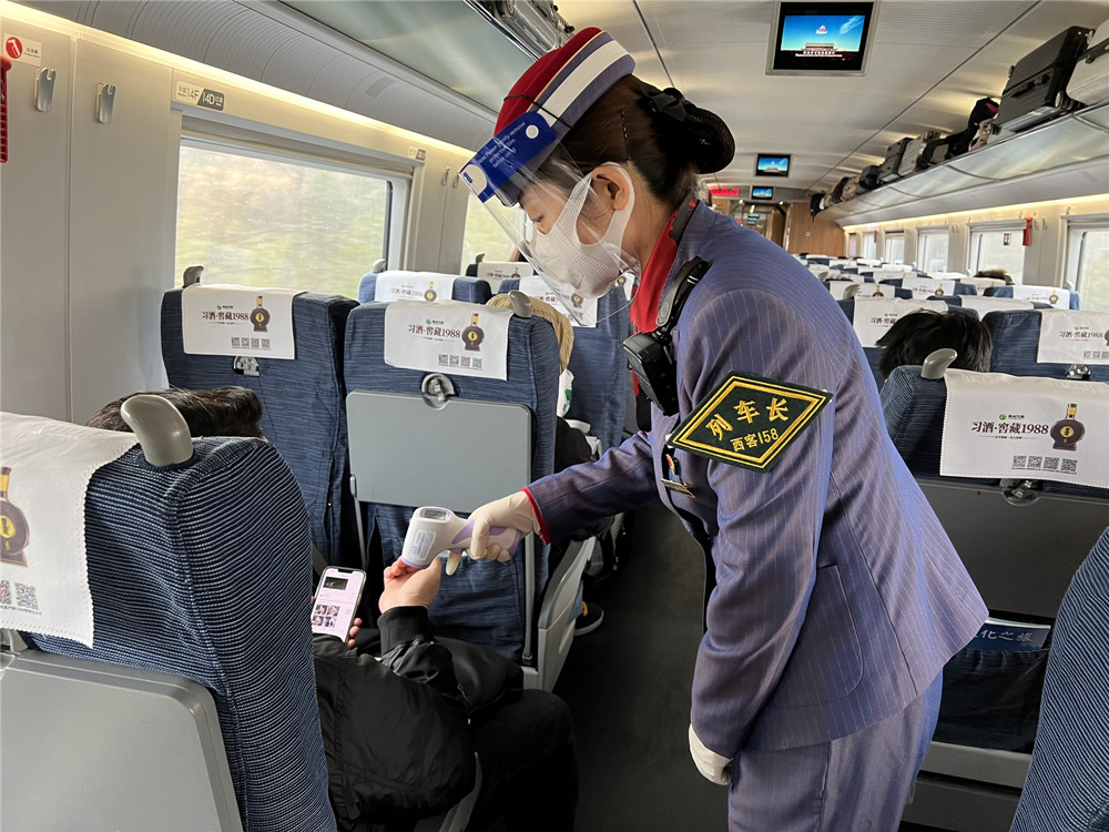 面對今年春運疫情防控形勢和大客流安全運輸壓力,全體高鐵乘務(wù)人員將嚴(yán)把安全關(guān),加強設(shè)施設(shè)備檢修維護(hù)。主動做好疫情防控,加強車廂內(nèi)消毒和衛(wèi)生清掃、為旅客提供安全衛(wèi)生的餐飲產(chǎn)品,加密列車公共部位消毒頻次、科學(xué)做好發(fā)熱旅客處置、加強旅客防護(hù)用品佩戴提醒等,用心為旅客服務(wù),讓旅客平安健康出行。