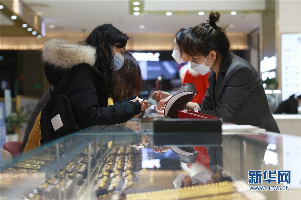 1月20日,西安市經(jīng)開區(qū)某商場內(nèi),市民在柜臺前咨詢飾品。新華網(wǎng) 王智超