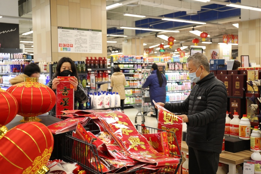 “今天解封了,我們趕緊出來透透氣,也趁機采購點年貨。”一名在年貨區(qū)挑選對聯的市民說,居家防疫期間很多日用品都用完了,在網上購買快遞也不一定能送到,小區(qū)解封后他早早就出門了,準備多買點東西。