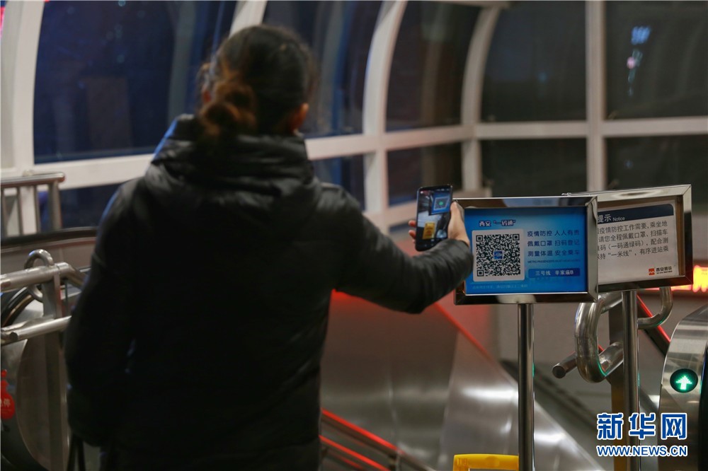 1月25日,西安地鐵三號線辛家廟站B口,市民在進行掃碼登記。新華網(wǎng) 王智超 攝