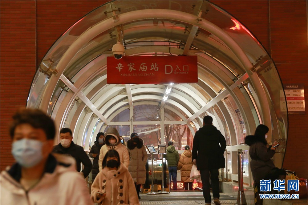 1月25日,西安地鐵三號線辛家廟站D口來往的進出站乘客。新華網(wǎng) 王智超 攝