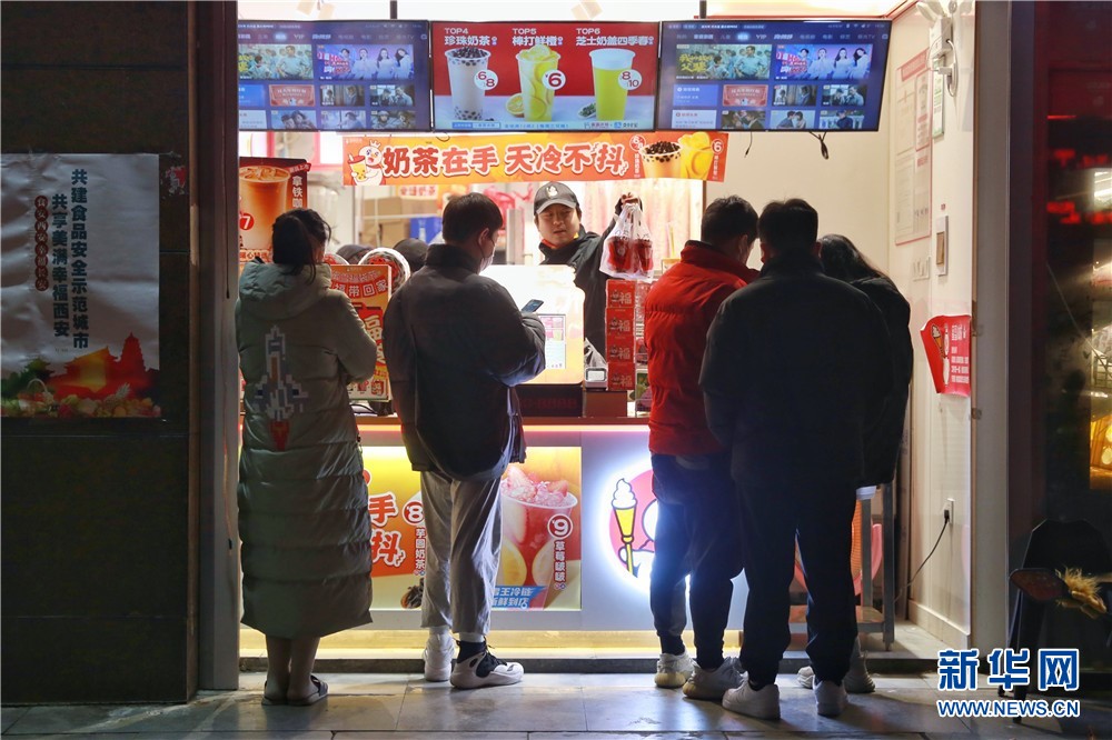 1月25日,在西安市未央?yún)^(qū)一家飲品外,市民正在排隊購買。新華網(wǎng) 王智超 攝
