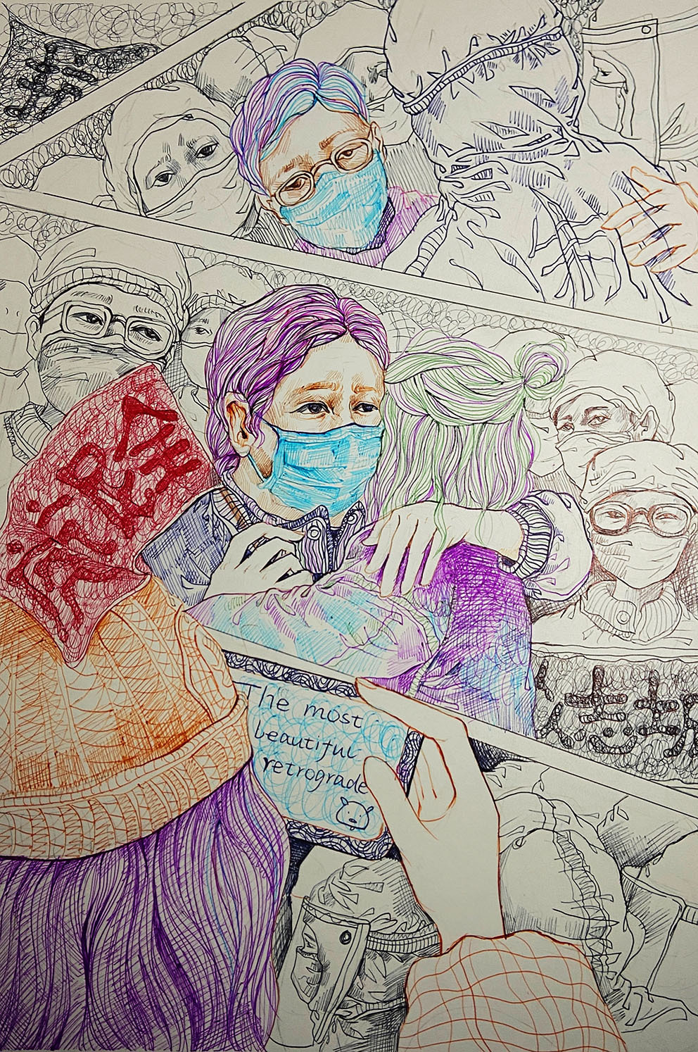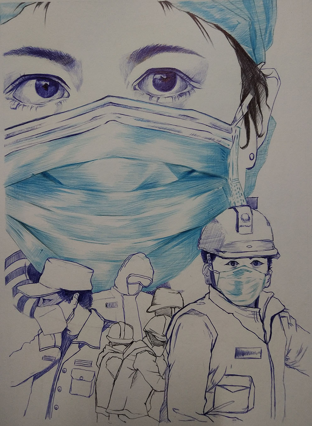 2021年12月,新冠肺炎疫情在西安突然暴發(fā),面對(duì)突如其來(lái)的疫情和嚴(yán)峻復(fù)雜的防控形勢(shì),在加強(qiáng)落實(shí)疫情防控、保障師生健康的同時(shí),西安工程大學(xué)服裝與藝術(shù)設(shè)計(jì)學(xué)院積極應(yīng)對(duì),組織全院師生有序、規(guī)范開(kāi)啟2021年秋季期末課程結(jié)課的線上教學(xué)。任課教師及時(shí)調(diào)整結(jié)課作業(yè)主題,充分利用視覺(jué)傳達(dá)設(shè)計(jì)專業(yè)特點(diǎn),組織同學(xué)們嚴(yán)謹(jǐn)認(rèn)真、激情飽滿地用畫筆以藝抗疫,致敬最美逆行者!