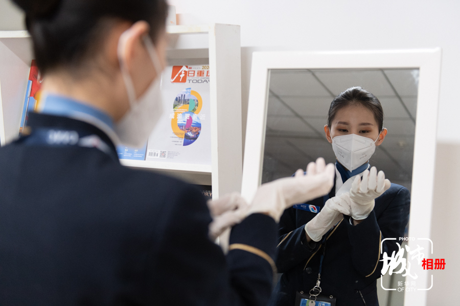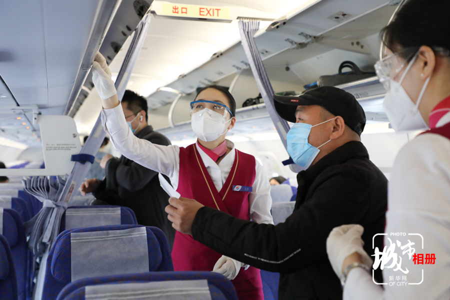 回憶新冠肺炎疫情第一年的春運,賀佳麗說,空乘需要直接接觸過往人員,最初還是很擔心,但是為了守好這道安全“關(guān)”,同事們都拼盡全力。新華網(wǎng) 耿駿宇 攝 陳雨 文