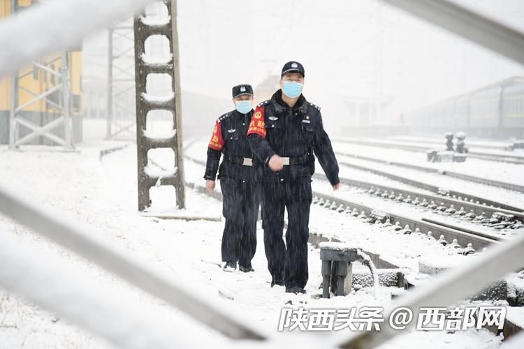 西部網(wǎng)訊(記者 馬晴茹 通訊員 張鑫 田甜) 1月27日,陜西省寶雞市迎來大范圍雨雪冰凍天氣,恰逢春運出行高峰,西安鐵路公安處寶雞站派出所民警頂風(fēng)冒雪,排查行車設(shè)備、重點部位的治安安全隱患,全力確保雪天鐵路運輸安全暢通,旅客出行平安。