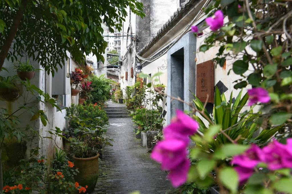 如今,一棟棟舊宅,在藝術家的手中重獲生機。以樟坑徑河為主線,連接起水系兩側(cè)分布的百年客家碉樓、祠堂、休閑廣場、九龍墻、半月湖等各類要素,一條獨特的客家文化風情帶正在上圍村加速形成。