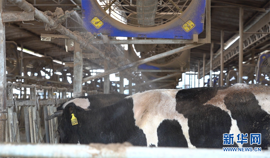 重慶市合川區(qū)太和鎮(zhèn)天合牧場(chǎng),智能噴頭正在給奶牛噴淋降溫。新華網(wǎng) 馬天龍 攝