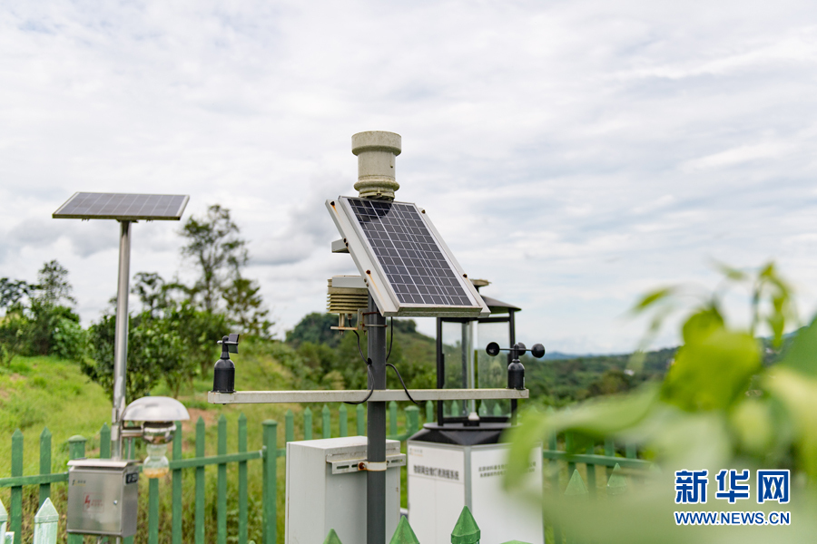 圖為青龍村數(shù)字化無(wú)人果園內(nèi)的“小氣候監(jiān)測(cè)站”。新華網(wǎng) 耿駿宇 攝