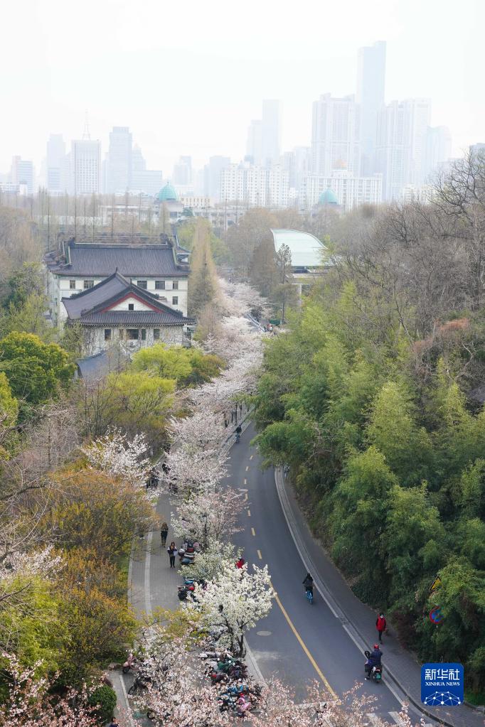 3月23日拍攝的南京市雞鳴寺路盛開的櫻花。新華社記者 季春鵬 攝