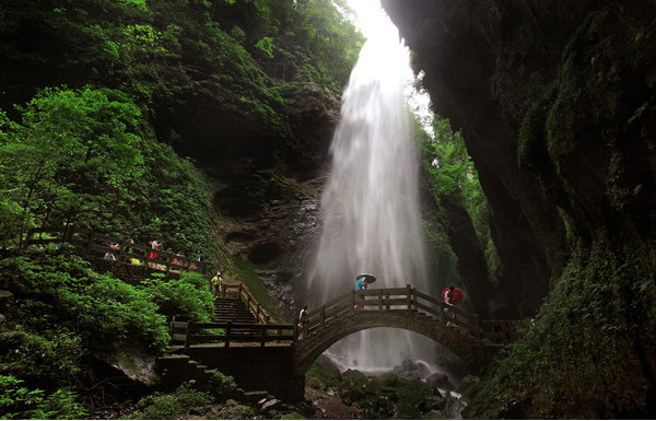 天生三橋景區(qū),大自然鬼斧神工之杰作,其壯麗的自然風光使之備受電影大片的青睞,已經成為《變形金剛4》及《滿城盡帶黃金甲》的拍攝地。清明節(jié)期間,天生三橋景區(qū)野生梨花、櫻花次第綻放,滿園春色,變形金剛在春花的映襯下也展現(xiàn)俠骨柔情的一面。景區(qū)內玉樹蔥蔥、鳥語花香下的三橋夾兩坑壯觀景色,是相機無法拍攝出,僅能親眼看到用心感受的磅礴氣勢。
