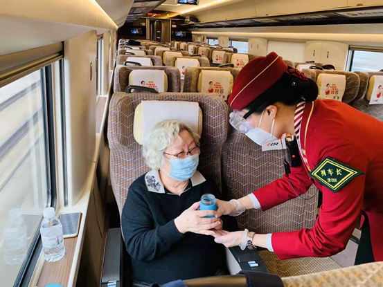 前一天晚上十一點半,剛剛退乘的付婷婷接到了為馳援上海臨時加開醫(yī)護人員專列的值乘任務,她沒有片刻遲疑,越是艱險越是向前。凌晨5點,天蒙蒙亮,她就早早起來收拾出乘可能用到的各種物品,第一時間趕到單位,為運送援滬醫(yī)療隊做好了各項準備。“無論是我一直值乘的G5還是現(xiàn)在臨時加開的G267,都走京滬線,從2012年到2022年,從23歲到33歲,我一直往返京滬間,值乘4300余趟,里程達560萬公里,相當于繞地球140圈,這條線路上有什么特點,可能發(fā)生什么情況,我再熟悉不過,所以運送醫(yī)療隊讓我去最合適!”付婷婷自豪地說。