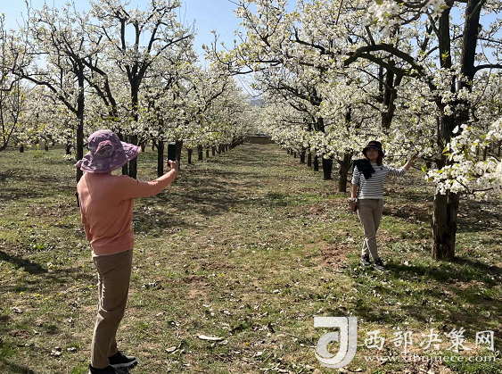 慕名而來(lái)的游客們漫步花海,賞花、留影,梨園中處處歡聲笑語(yǔ),歡樂又浪漫的氛圍讓人流連忘返。