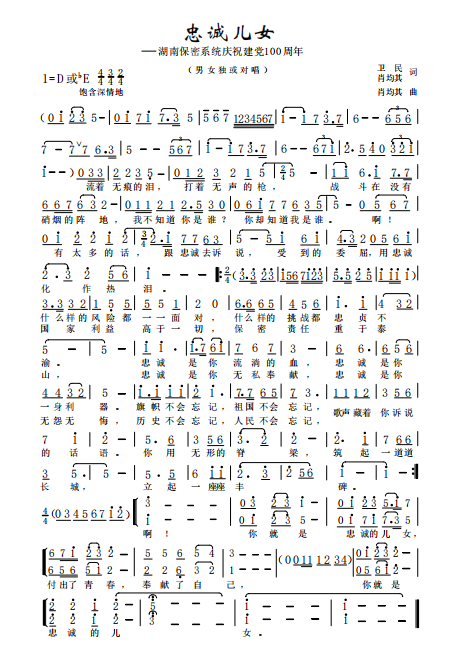 慶祝建黨百年獲獎(jiǎng)歌曲作品選集——《忠誠(chéng)兒女》詞曲。