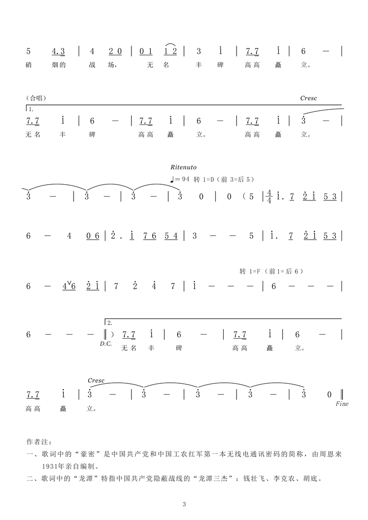 一、A1段歌詞中的“豪密”是中國(guó)共產(chǎn)黨和中國(guó)工農(nóng)紅軍第一本無(wú)線(xiàn)電通訊密碼的簡(jiǎn)稱(chēng),由周恩來(lái)1931年親自編制。