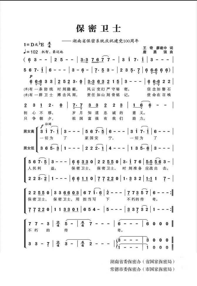慶祝建黨百年獲獎(jiǎng)歌曲作品選集——《保密衛(wèi)士》音頻。