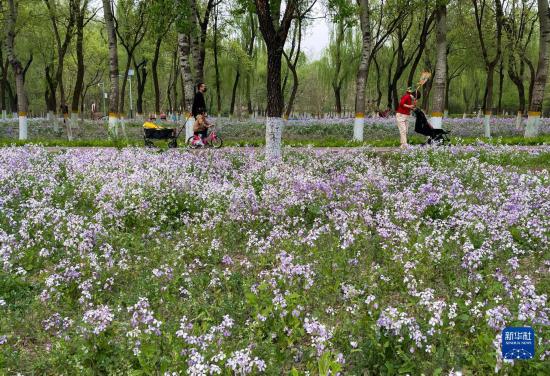 4月17日拍攝的鮮花盛開的京城森林公園。