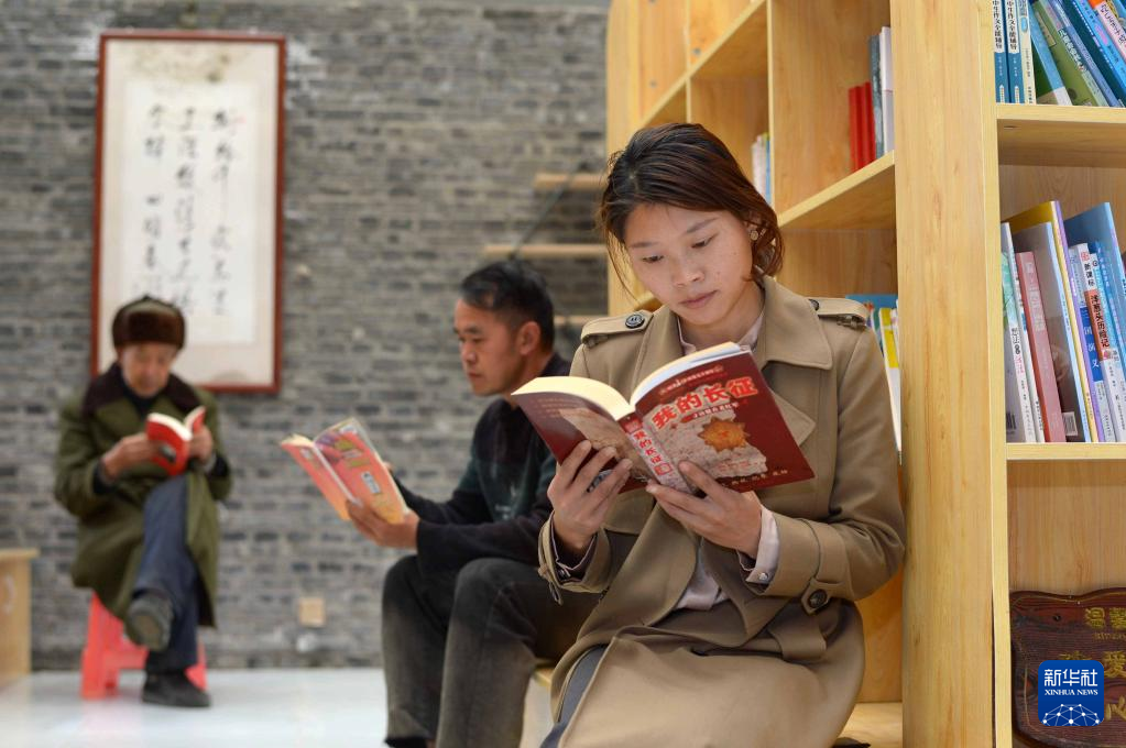 4月19日,人們在桐梓縣九壩鎮(zhèn)山堡社區(qū)紅色書吧閱讀。