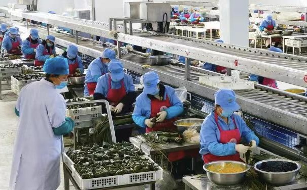 “粽子產業(yè)園投產不到幾天,就接到北京、上海、天津、內蒙古等地客戶的300萬只粽子訂單,其中30%來自網絡平臺。”張新文說。
