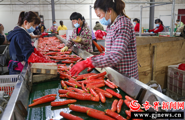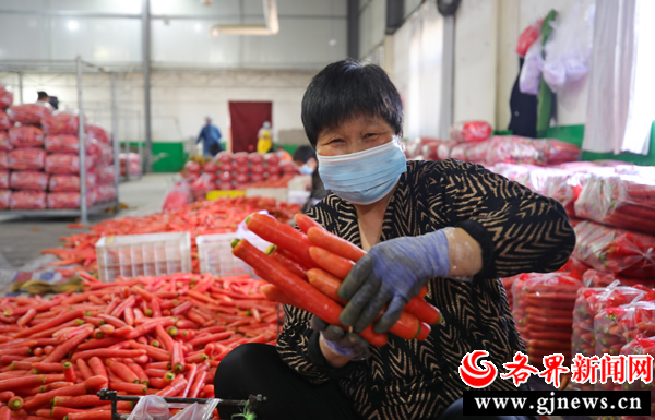 據(jù)了解,僅去年該產(chǎn)業(yè)園就給群眾發(fā)放工資160多萬元。在清洗車間工作的村民黨建紅告訴記者:“我們的庫房可以存放500萬斤紅蘿卜,僅流水線上一天就能清洗十萬噸,雖然每天在清洗車間干活累點,可每月到手工資能有大幾千塊呢。”