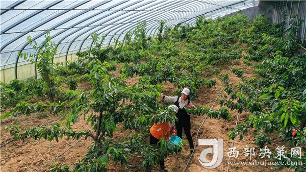 村民王大姐就是其中受益的一員。由于丈夫身體受傷不能干重活,弟弟身有殘疾,王大姐近幾年一直在產(chǎn)業(yè)園里打工。這份工作時(shí)間靈活,可以做到有事忙事,沒(méi)事上班。4月27日,王大姐正忙著在櫻桃大棚里采摘。提到這份工作,她心滿意足地告訴記者:“一小時(shí)10元,算下來(lái)平均一個(gè)月有2000多的收入。”除了這份收入,她家還種植了蘋果等經(jīng)濟(jì)農(nóng)作物,也能增加一些收入。