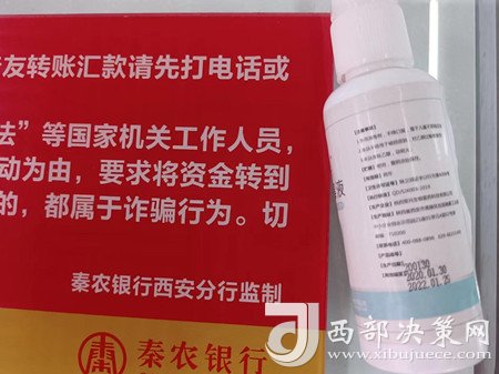 決策熱線|武先生:4月26日上午前往秦農銀行長安區(qū)支行辦理業(yè)務,營業(yè)大廳共有9個業(yè)務窗口,只有3個正常辦理個人業(yè)務,致使多數(shù)人在大廳內排隊等候,隊伍已排到了營業(yè)廳門口。辦理銀行卡用了近2個小時,銀行業(yè)務效率低。隨后發(fā)現(xiàn)窗口擺放的防疫消毒液已過效期(生產日期:2020.1.30,有效期至:2022.1.29),防疫物資疏于管理。