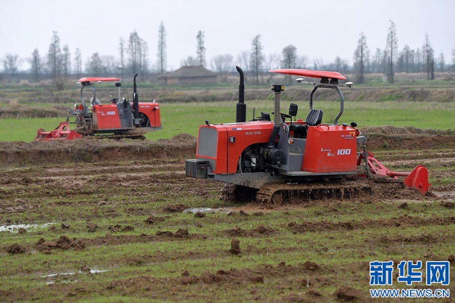 在江西省南昌縣蔣巷鎮(zhèn)大田農(nóng)社,兩臺無人旋耕機(jī)正在翻地作業(yè)。新華社記者 彭昭之?dāng)z