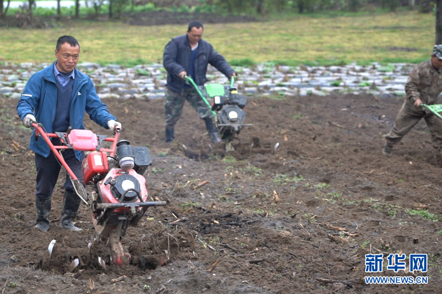 3月25日,冷水鎮(zhèn)玉龍村村民正在用農(nóng)機(jī)犁地,準(zhǔn)備播種高山反季節(jié)蔬菜。新華網(wǎng) 耿駿宇 攝