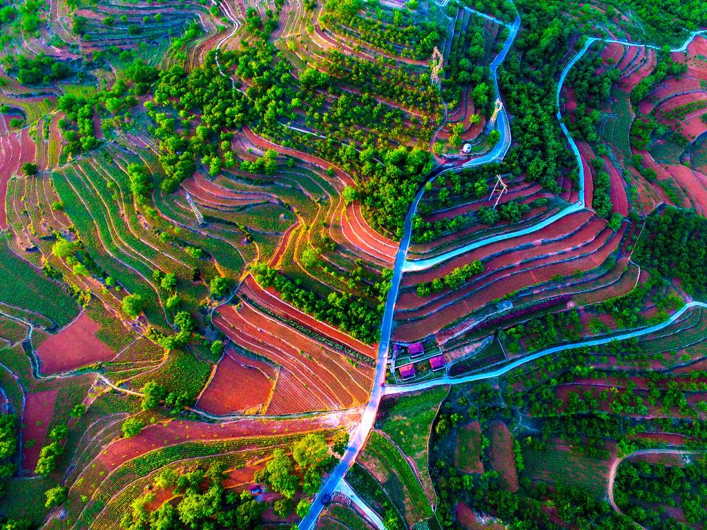 2017年5月,東蓮花院鎮(zhèn)花鄉(xiāng)果巷項目區(qū)域俯瞰(無人機照片)。王愛軍攝