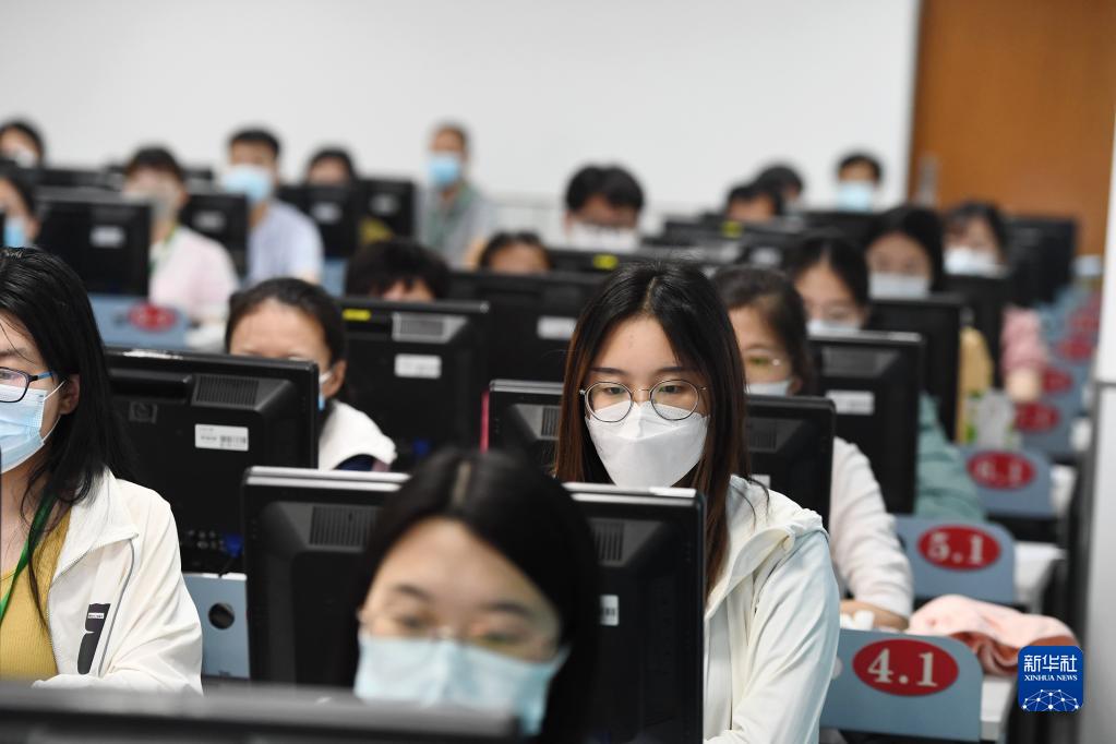6月14日,在位于吉林長(zhǎng)春的東北師范大學(xué)高考網(wǎng)上評(píng)卷點(diǎn),工作人員在評(píng)卷。據(jù)了解,2022年吉林省高考評(píng)卷工作全部采用電子掃描、網(wǎng)上評(píng)卷方式進(jìn)行。新華社記者 張楠 攝