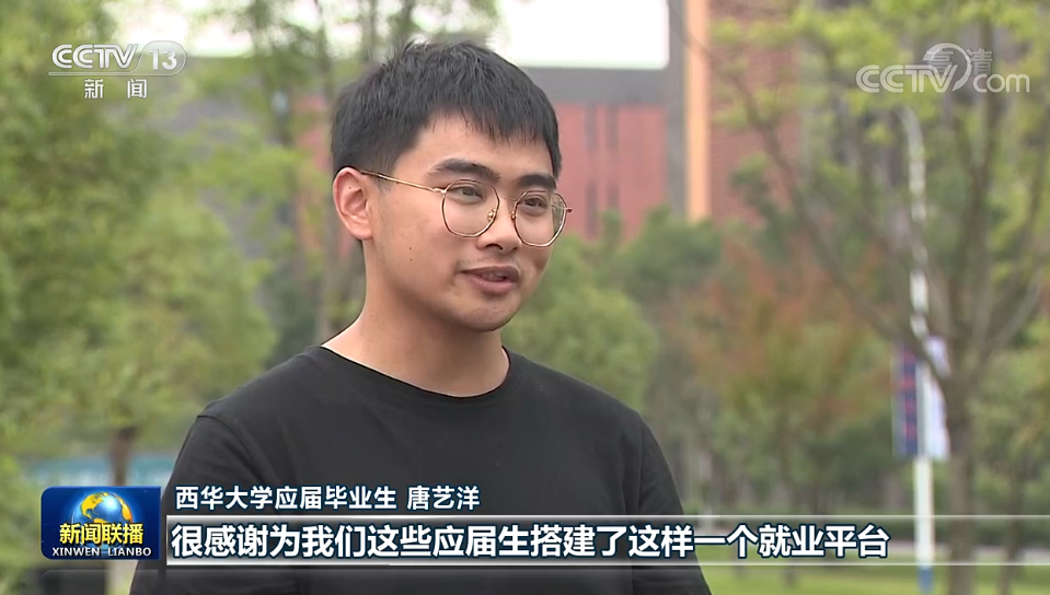 西華大學(xué)應(yīng)屆畢業(yè)生 唐藝洋:很感謝為我們應(yīng)屆畢業(yè)生搭建了就業(yè)平臺。下一步,我會按照習(xí)近平總書記勉勵我們青年學(xué)子時說的那樣,要熱愛勞動,腳踏實地,在實踐中一步步成長起來,努力做一個德智體美勞全面發(fā)展的人。