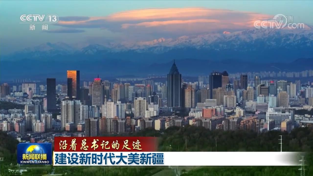 央視網(wǎng)消息(新聞聯(lián)播):2014年4月,習(xí)近平總書記赴新疆考察調(diào)研,從南疆到北疆、從地方到兵團(tuán),為新時(shí)代新疆跨越式發(fā)展領(lǐng)航掌舵。新疆各族干部群眾在以習(xí)近平同志為核心的黨中央堅(jiān)強(qiáng)領(lǐng)導(dǎo)下,共同團(tuán)結(jié)奮斗,奮力建設(shè)一個(gè)團(tuán)結(jié)和諧、繁榮富裕、文明進(jìn)步、安居樂業(yè)、生態(tài)良好的新時(shí)代中國(guó)特色社會(huì)主義新疆。