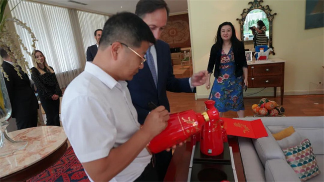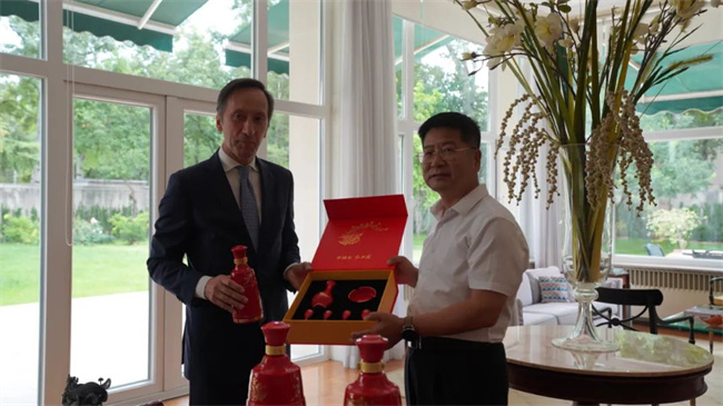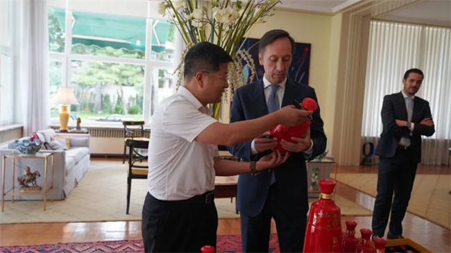 陜西西鳳酒股份有限公司副總經(jīng)理高洪濤一行在葡萄牙駐華大使官邸交流現(xiàn)場(chǎng)