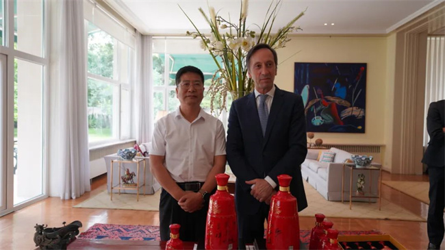 陜西西鳳酒股份有限公司副總經(jīng)理高洪濤與葡萄牙駐華大使杜傲杰合影