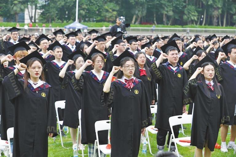 西安交通大學(xué)畢業(yè)典禮上,同學(xué)們莊嚴(yán)宣誓,表達(dá)了把青春奮斗融入黨和人民事業(yè)的堅(jiān)定決心。西安交通大學(xué)供圖