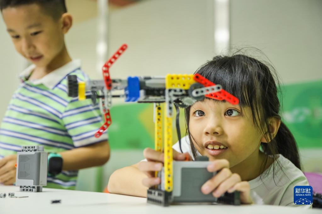 8月2日,在湖南省永州市藍(lán)山縣一培訓(xùn)學(xué)校,孩子們在體驗機器人編程。新華社發(fā)(彭華攝)
