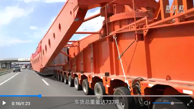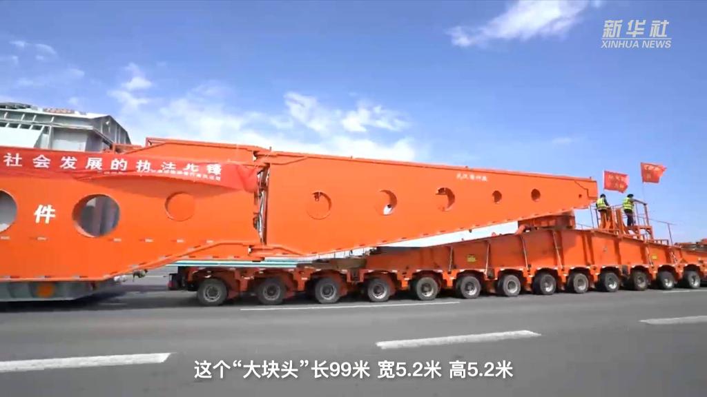 日前,一輛車(chē)輪總數(shù)多達(dá)350個(gè)的超大型運(yùn)輸車(chē),搭載著一臺(tái)±800千伏變壓器,從新疆昌吉市出發(fā)駛往甘肅酒泉市。這個(gè)“大塊頭”長(zhǎng)99米、寬5.2米、高5.2米,車(chē)貨總重量達(dá)737噸,由兩個(gè)車(chē)頭牽引、一個(gè)車(chē)頭助推,車(chē)輛長(zhǎng)度、載重噸位均創(chuàng)新疆大件運(yùn)輸史之最。