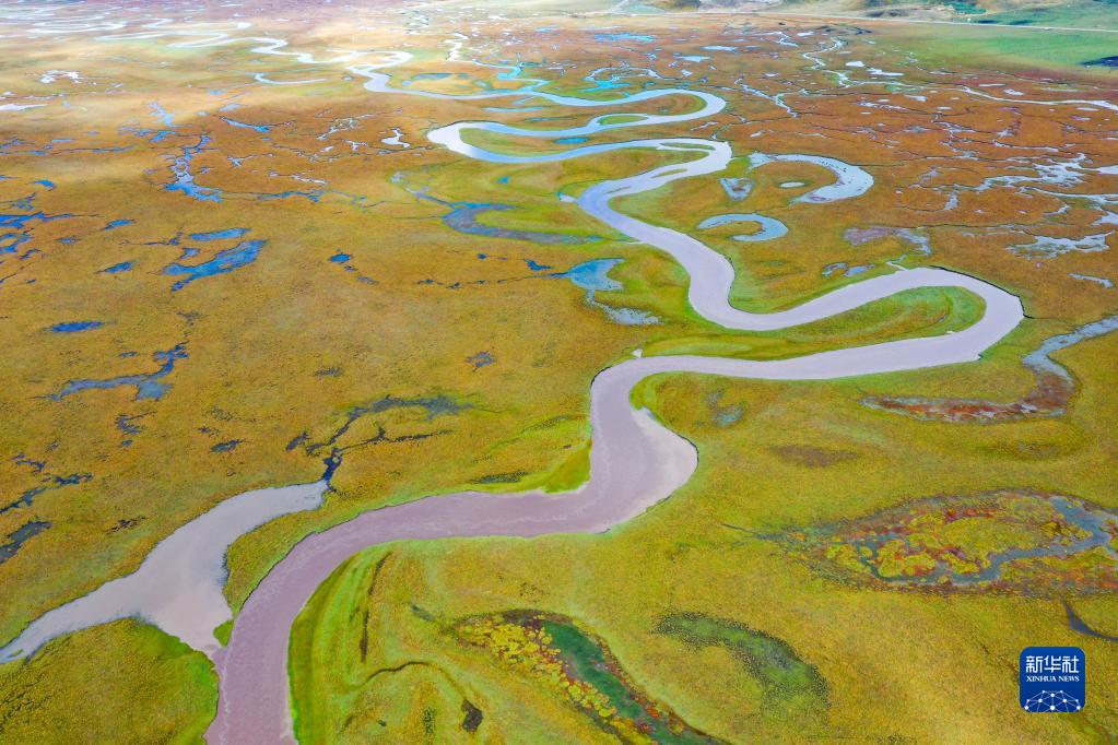 這是瑪曲縣阿萬倉濕地內(nèi)的河流和沼澤(9月17日攝,無人機(jī)照片)。新華社記者 郎兵兵 攝
