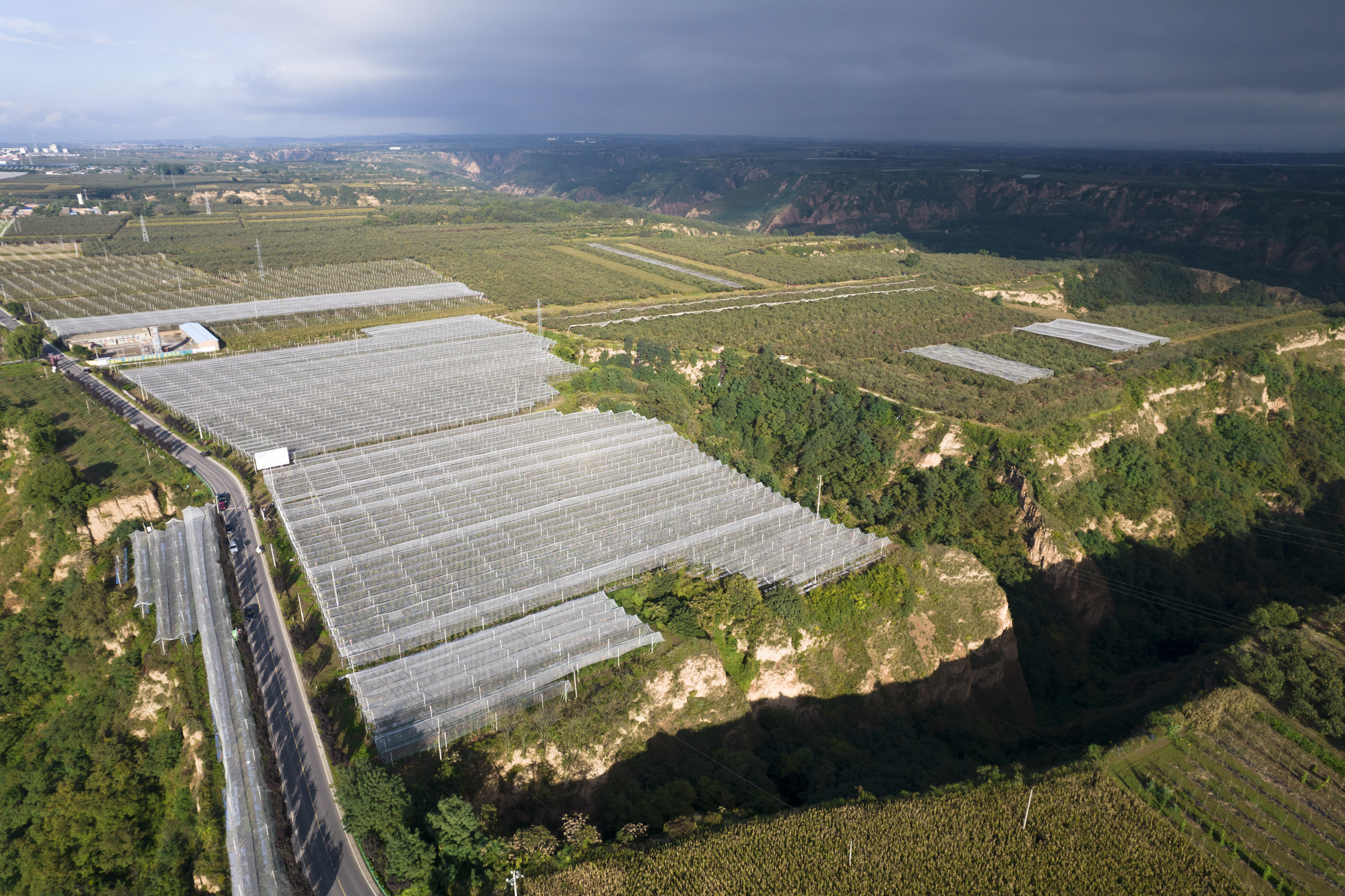 延安市洛川縣舊縣鎮(zhèn)發(fā)展的蘋果產(chǎn)業(yè)(9月20日攝,無人機照片)。新華社記者 邵瑞 攝