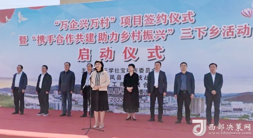 西部決策網(wǎng)訊 9月28日,為進一步落實全市黨派工作協(xié)同協(xié)商會議精神,九三學社寶雞市委、鳳縣工商聯(lián)“萬企興萬村”項目簽約儀式暨“攜手合作共建 助力鄉(xiāng)村振興”三下鄉(xiāng)活動啟動儀式在鳳縣平木鎮(zhèn)隆重舉辦。 寶雞市人大常委會副主任、九三學社寶雞市委主委車爽,鳳縣人大常委會主任劉淳,中共寶雞市委統(tǒng)戰(zhàn)部班子成員、二級調(diào)研員毛建錄,中共鳳縣縣委常委、統(tǒng)戰(zhàn)部部長吳海濤,九三學社寶雞市委副主委兼秘書長郭紅全、副主委李獻軍,中共寶雞市委統(tǒng)戰(zhàn)部黨派科科長湛玉忠,鳳縣平木鎮(zhèn)黨委書記張紅利、鎮(zhèn)長鄧振宇,鳳縣工商聯(lián)主席陳強參加簽約儀式和三下鄉(xiāng)啟動儀式?;顒觾x式由郭紅全副主委主持。