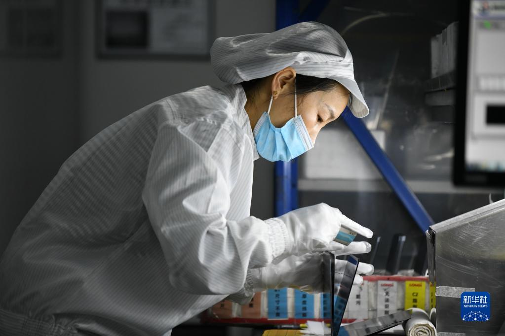 在隆基綠能科技股份有限公司西安切片工廠,工人在進行檢測包裝作業(yè)(2022年1月18日攝)。新華社記者 李一博 攝