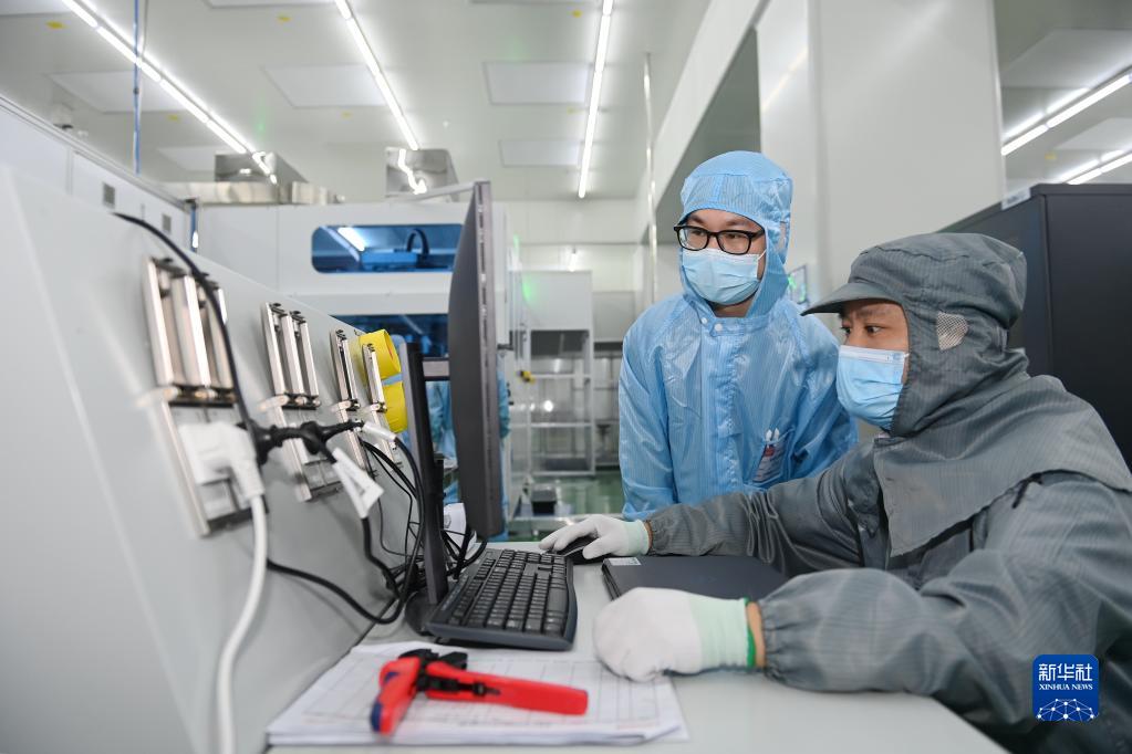 科研人員在秦創(chuàng)原光伏創(chuàng)新中心——隆基中央研究院中試線上工作(2022年9月23日攝)。新華社記者 李一博 攝