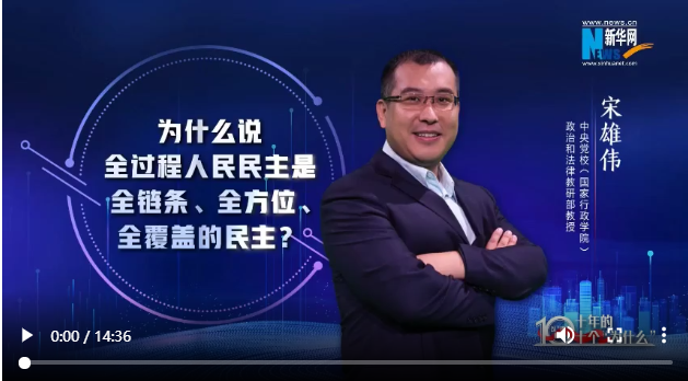 十年非凡成就,蘊藏深刻啟示。如何用中國理論闡釋中國實踐?新華網聯合中央黨校(國家行政學院)國家高端智庫,推出“思客講堂·黨校公開課(第三季)”《以“理”服人:十年的十個“為什么”》。十位黨校青年教師通過十集理論短視頻,帶你探究非凡成就背后的“中國密碼”。本期讓我們跟隨中央黨校(國家行政學院)政法教研部教授宋雄偉,感受全過程人民民主在中國的生動實踐。