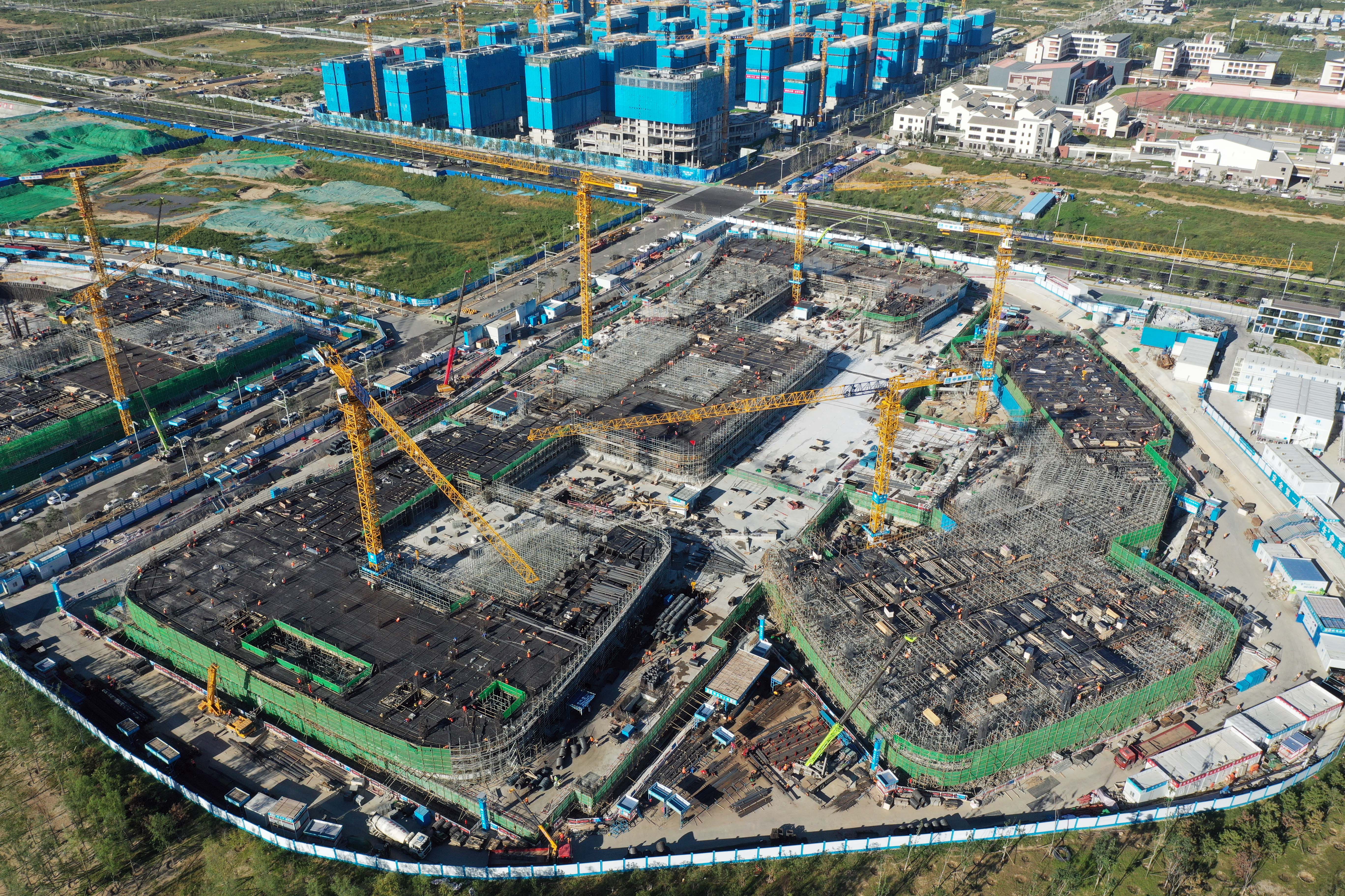 位于雄安新區(qū)啟動(dòng)區(qū)的中國(guó)星網(wǎng)雄安新區(qū)總部大樓建設(shè)施工現(xiàn)場(chǎng)(2022年9月7日攝,無(wú)人機(jī)照片)。新華社記者 朱旭東 攝
