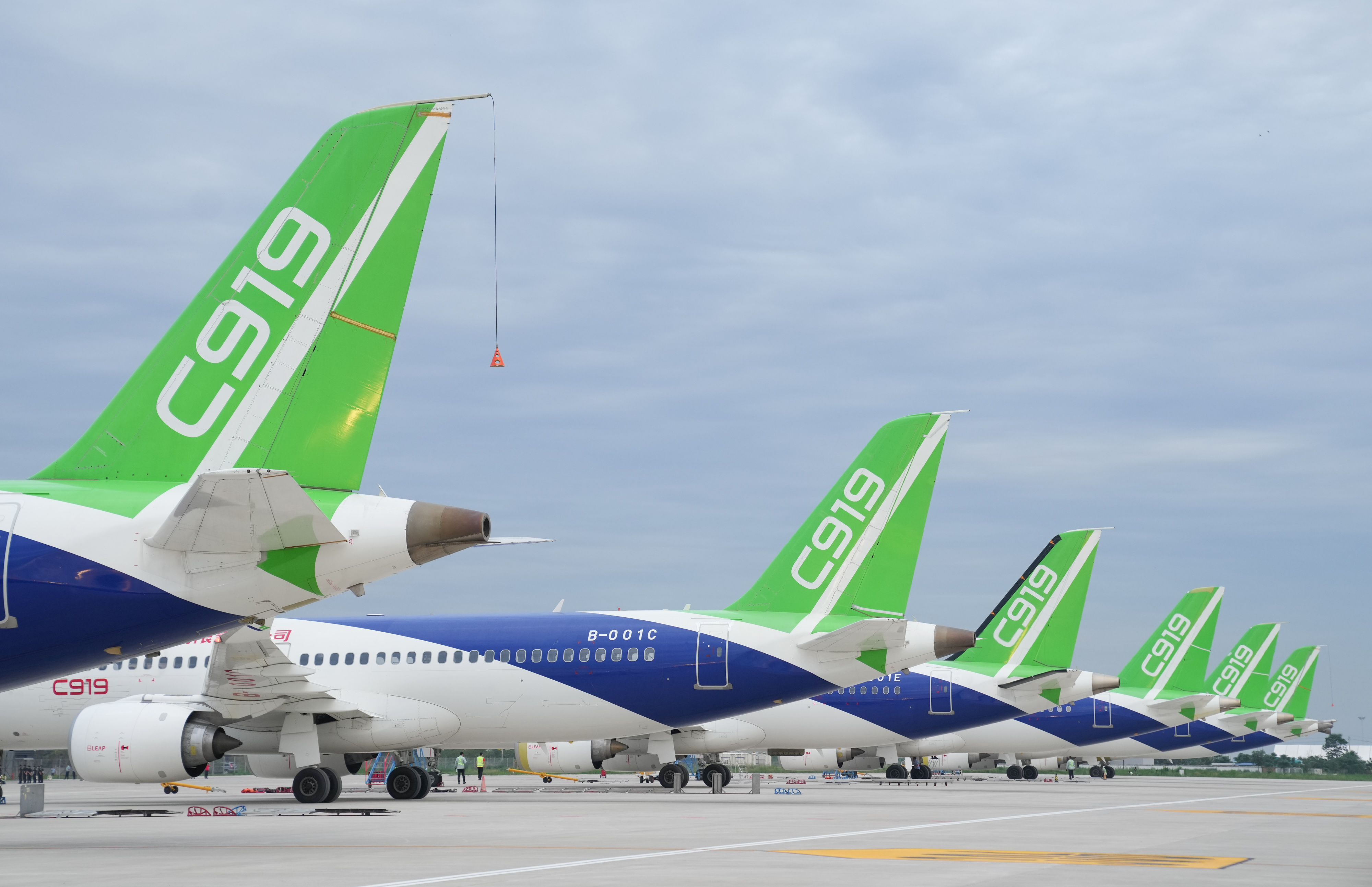 在陜西省蒲城縣拍攝的C919大型客機(jī)的試飛機(jī)(2022年7月18日攝)。新華社記者 丁汀 攝