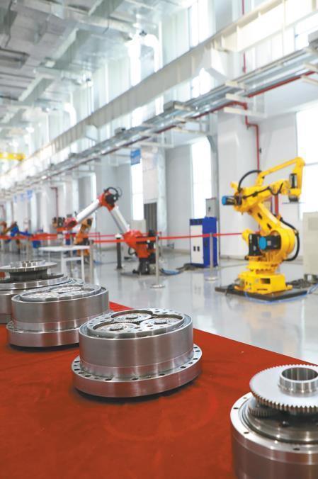一臺黃色的機器人輕輕抬起“手臂”,把兩個擁有“巨大牙齒”的金屬塊嚴絲合縫地合在一起。機器人“手臂”能活動自如,取決于健康的“關節(jié)”。關節(jié)減速器是機器人“手臂”的核心零部件,它可以幫助機器人提升抓取精度,提高承載力。