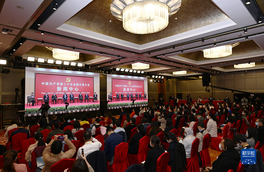 10月19日,中國共產(chǎn)黨第二十次全國代表大會(huì)新聞中心舉行集體采訪。山東、河南、湖北、湖南、廣東、廣西、海南代表團(tuán)新聞發(fā)言人出席,介紹代表團(tuán)學(xué)習(xí)討論二十大報(bào)告情況,并回答記者提問。新華社記者 陳建力 攝