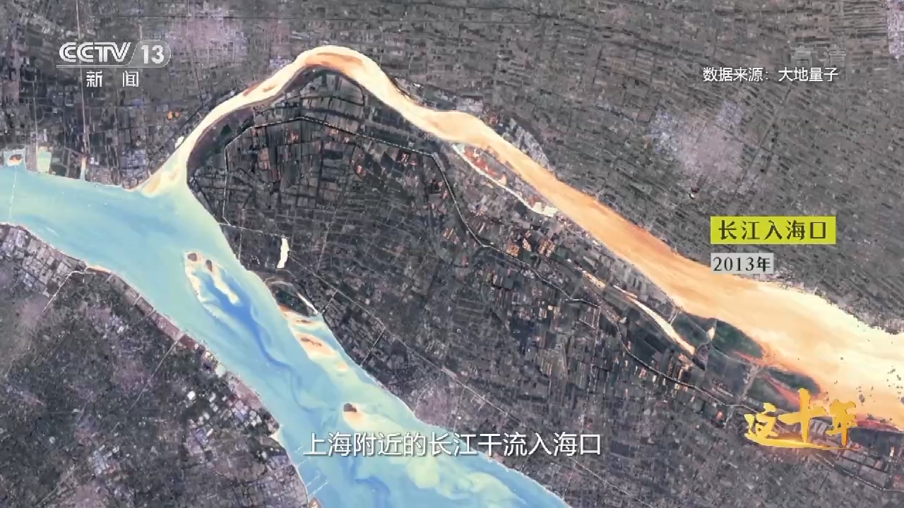 這是2013年6月,上海附近的長江干流入???,水質(zhì)遙感監(jiān)測還原出了水質(zhì)狀況,黃色越重說明污染越重。這是2021年的同一天,同一角度,黃色褪去,水質(zhì)明顯變好了。我們對生態(tài)環(huán)境部發(fā)布的長江工業(yè)污染排放數(shù)據(jù)進行分析整理,找出了主要污染物化學(xué)需氧量和氨氮近十年的排放量,形成了這樣的走勢曲線,2015年開始快速下降,如今排放量只有十年前的一成左右。