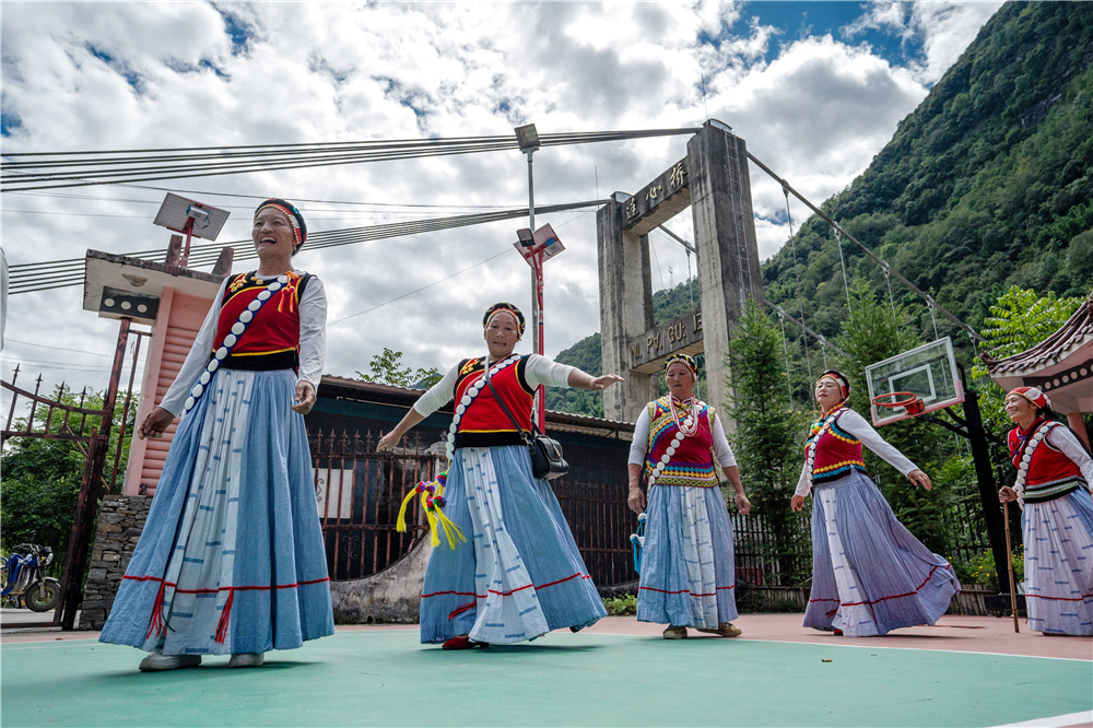 云南省怒江州福貢縣石月亮鄉(xiāng)拉瑪?shù)状宕迕褡园l(fā)組成的“奮進(jìn)合唱團(tuán)”在村委會排練節(jié)目(2022年9月14日攝)。2020年,怒江州26.96萬貧困人口全部脫貧,249個貧困村全部出列,4個貧困縣(市)全部摘帽。新華社記者 江文耀 攝