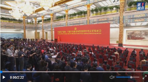 剛剛在中國共產(chǎn)黨第二十屆中央委員會第一次全體會議上當(dāng)選的中共中央總書記習(xí)近平和中共中央政治局常委李強(qiáng)、趙樂際、王滬寧、蔡奇、丁薛祥、李希,23日中午在人民大會堂同采訪中共二十大的中外記者親切見面。