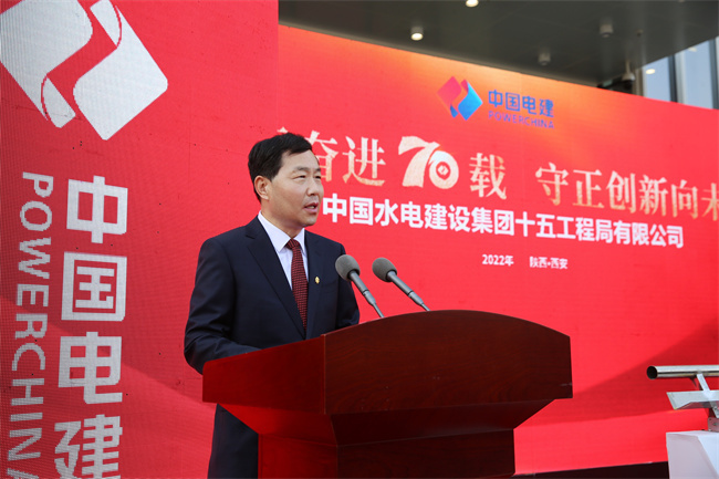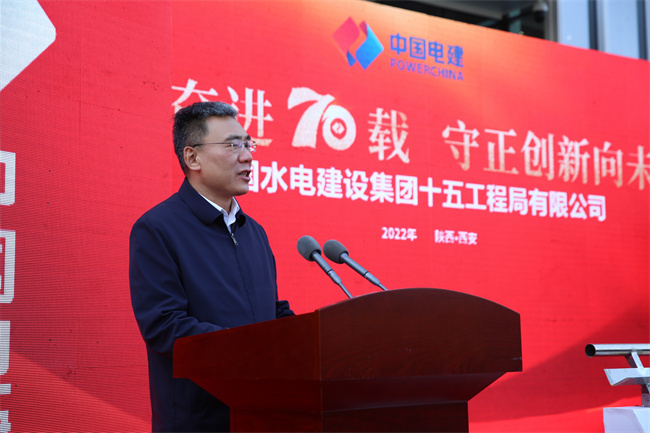 水電十五局黨委書記、董事長梁向峰發(fā)表致辭。他指出,70年來水電十五局緊緊跟隨共和國的腳步,以自帶風(fēng)雷的氣概與共和國一起成長,數(shù)代十五局人歷經(jīng)坎坷卻勇毅向前,在祖國大地建起了一項(xiàng)項(xiàng)雄美的工程!特別是黨的十八大以來的10年,著力推動(dòng)企業(yè)高質(zhì)量發(fā)展,大力提升內(nèi)生能力,大力擴(kuò)展業(yè)務(wù)布局,在區(qū)域及領(lǐng)域均形成大土木的業(yè)務(wù)結(jié)構(gòu),在產(chǎn)業(yè)鏈上不斷加快投資業(yè)務(wù)、總承包業(yè)務(wù)、融資加總承包業(yè)務(wù)等商業(yè)模式的構(gòu)建,國際業(yè)務(wù)遍布全球多個(gè)國家和地區(qū),總量占比全局的四分之一。以延安引黃、灃河治理,易俗社改造、興慶公園改造等項(xiàng)目為代表的新名片使十五局人更加自信。黨的二十大剛剛閉幕,中國的歷史翻開了新的一頁,特殊的日子,迎來建局70周年,同時(shí)入駐新的辦公大樓,在習(xí)近平新時(shí)代中國特色社會(huì)主義思想指引下,十五局人將在新時(shí)代的浪潮中倍加努力,再創(chuàng)輝煌!